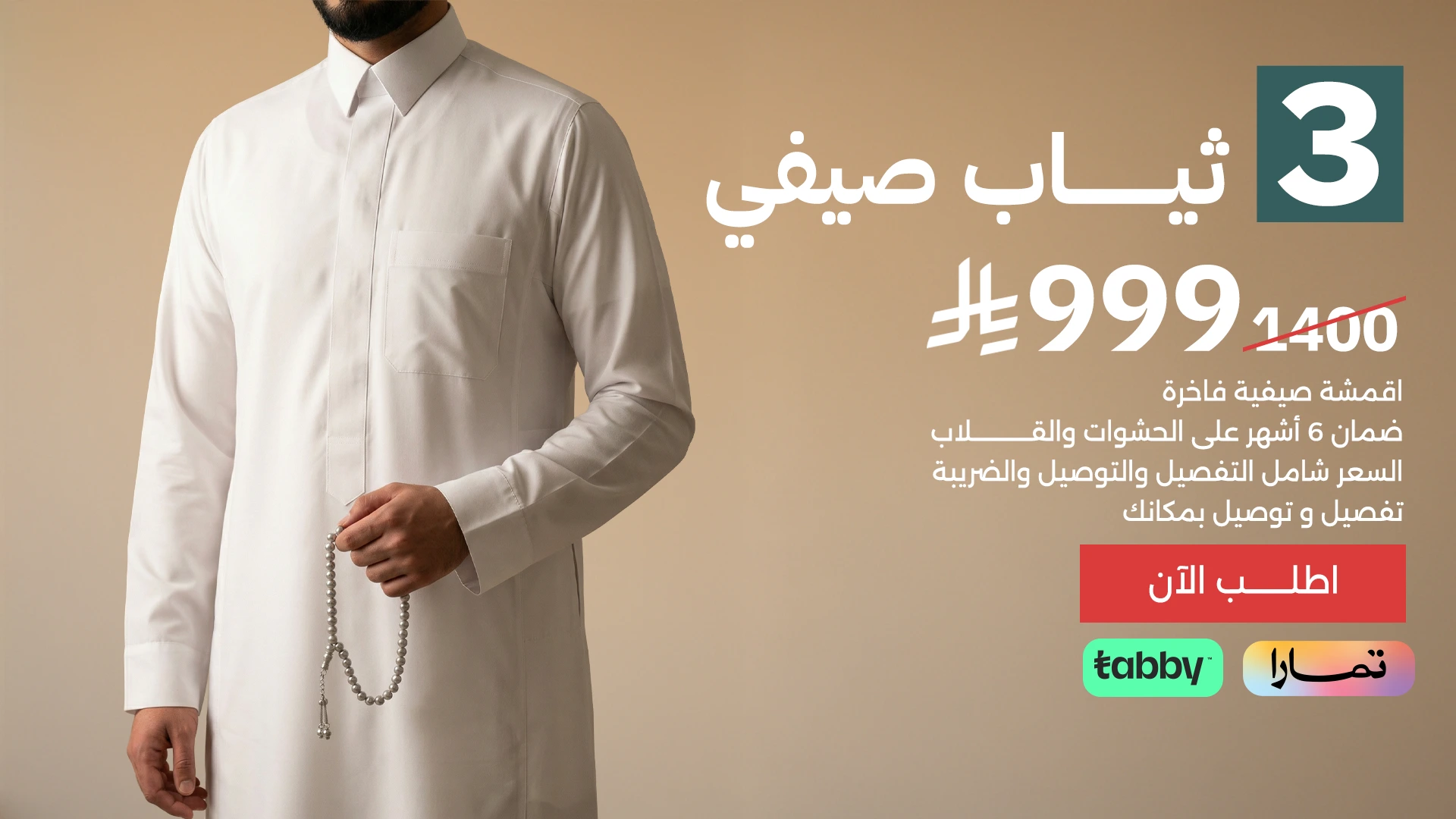 الخدمة: بكج ٣ ثياب ب٩٩٩ ريال