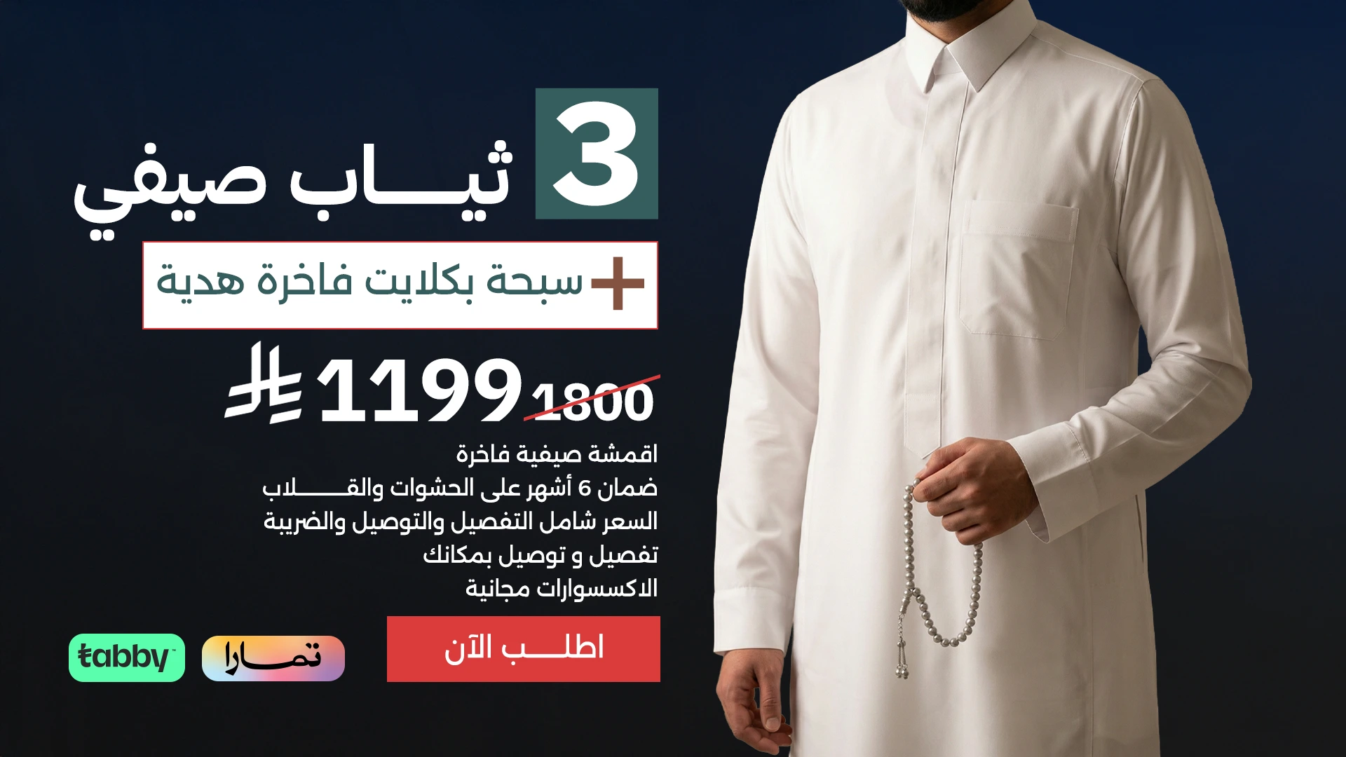 الخدمة: بكج 3 ثياب شتوية فاخرة + سبحة مجاناً بـ 1199 ريال